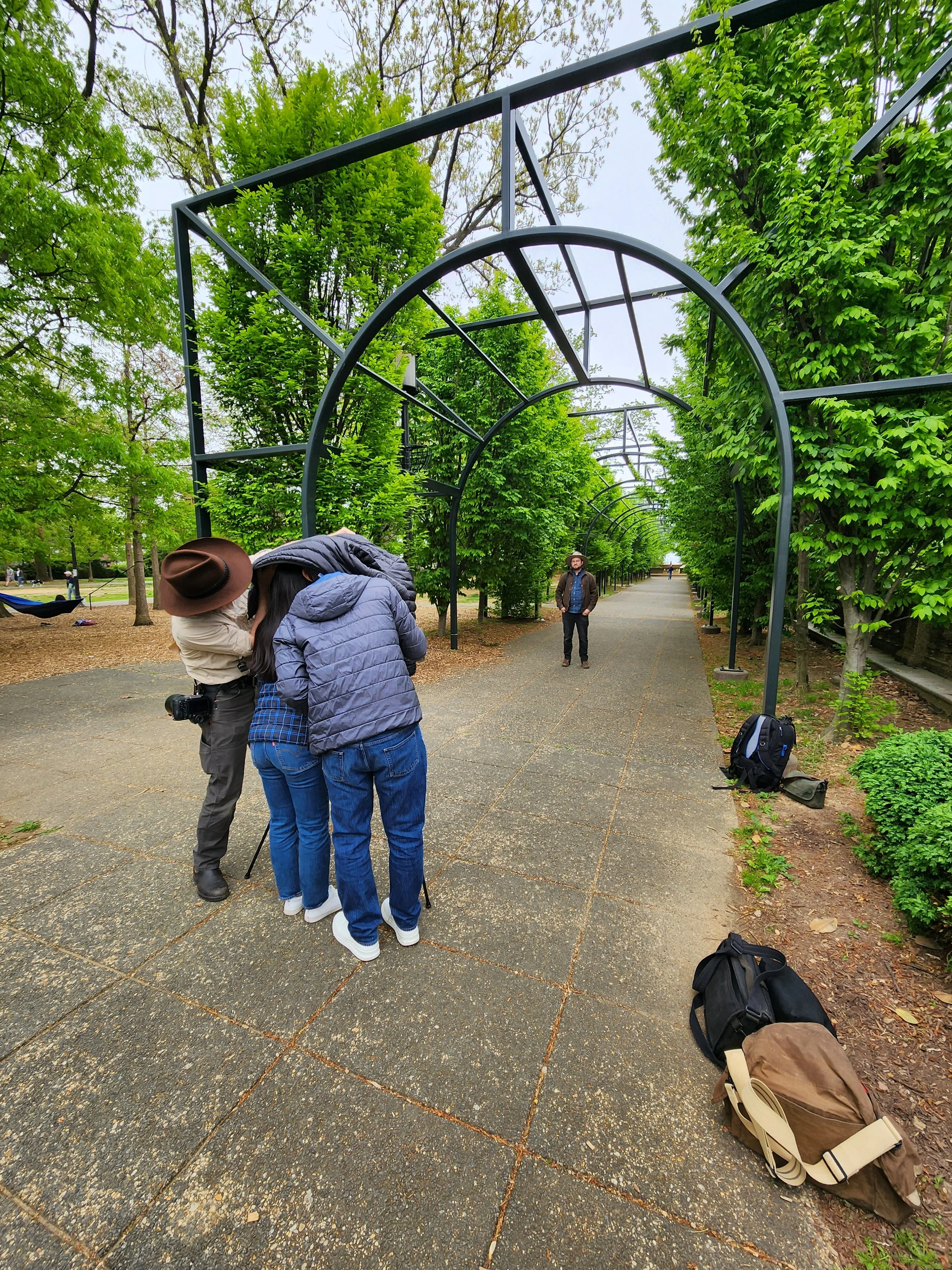 Our last stop was Meridian Hill Park- a frequent walking spot for Allison and Keegan. Eric brought out the big one for this- a large format camera. Here, Eric shows Keegan and Allison what the shot could look like, as Tom stands in as the model. That film is still being processed, but we’re excited to see how it turns out.