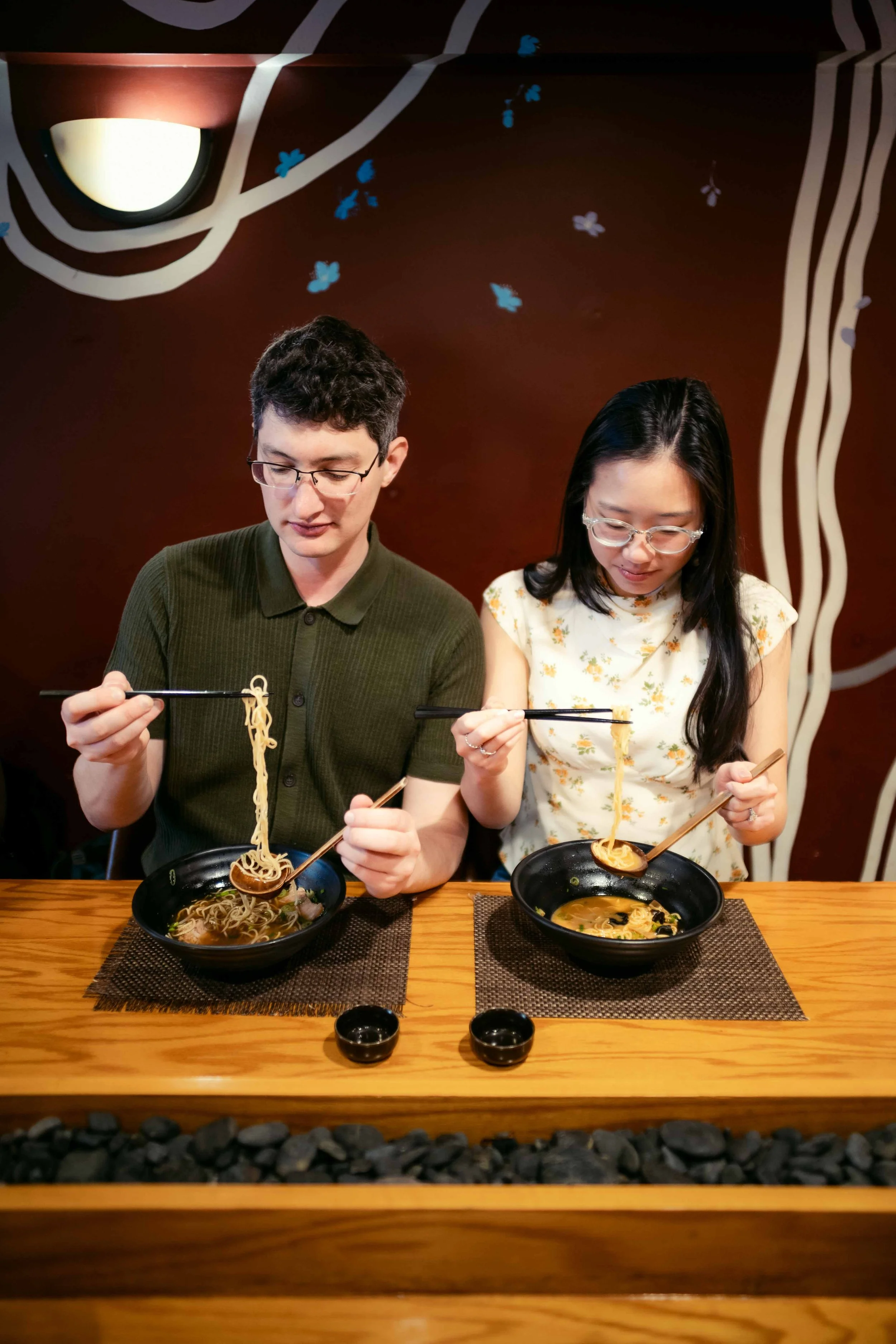 Each couple is different, and therefore each shoot is different. For Keegan and Allison, that meant nature, ramen, and sophistication. Our aim with engagement and wedding photography is to make the images unique to the couple with formats that bring out their relationship dynamic- to tell a story. Sometimes it’s about posing, but it often goes beyond that. We aim to bring the couple into the experience and give them a chance to be a part of the process. Allison and Keegan were knowledgeable of what they wanted, but we hope the little things we added helped bring more of the emotions to life and a memorable day for them too.